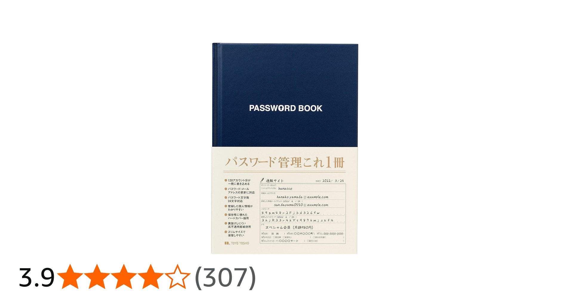 ●大事なパスワード管理にこれ1冊!●120アカウント分が1冊に書き込める。●パスワード、メールアドレスの更新、パスワード文字数24文字に対応。●登録した個人情報が分かりやすい。●保存性にすぐれたハードカバー採用。●裏抜けしにくい高不透明度紙...